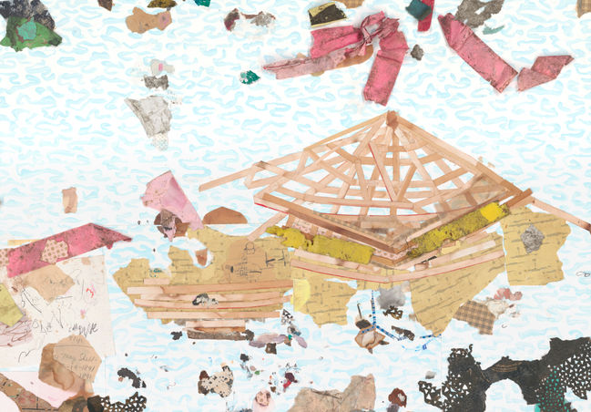 mixed media drawing on paper with acrylic, graphite and collage