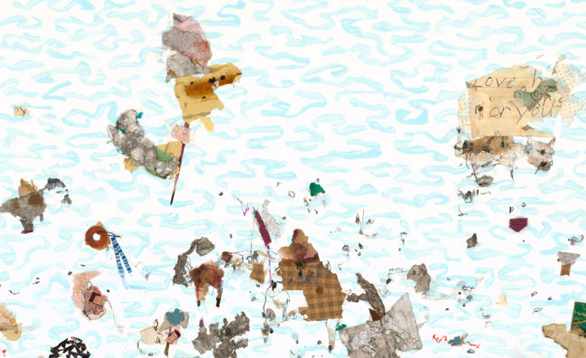 mixed media drawing on paper with acrylic, graphite and collage